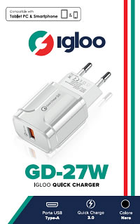 ADATTATORE MOBILE FAST CHARGE USB IGLOO WHITE/BLACK 27W